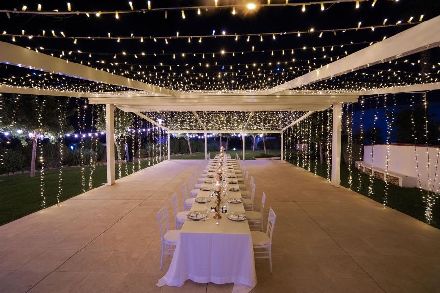 La vostra festa sarà un’esplosione di colori, emozioni e profumi grazie alla complicità di uno staff altamente qualificato e alla magia che avvolge lo spettacolare scenario del Manfredi Ricevimenti, location da sogno in cui ambientare un matrimonio indimenticabile. Spazi e capienza: Gli spazi a disposizione per i festeggiamenti sono vari e tutti contraddistinti da diverse caratteristiche: Il Salone delle Feste presenta un arredamento elegante, con un giusto equilibrio tra elementi moderni e classici e ampie vetrate che permettono, durante gran parte della giornata, una piacevole illuminazione naturale. Il Salone della Corte, con ampie vetrate che si affacciano sul giardino, è impreziosito da caratteristici lampadari Murano e rifiniture dai colori caldi. La Sala Dama Bianca, anch’essa dotata di ampie vetrate, si distingue per i rivestimenti in legno delle pareti, che la rendono un ambiente molto intimo e accogliente. Il giardino, infine, presenta innumerevoli scenari, con piscina, fontane, cascate e suggestivi giochi di luce, che vi permetteranno di allestire scenografie uniche per una festa veramente esclusiva. Manfredi Ricevimenti vi offre soluzioni su misura per le vostre esigenze con spazi in grado di ospitare fino a 350 persone. Servizi offerti: Il vostro ricevimento sarà memorabile, reso speciale dalle idee originali dello staff, attento alle vostre richieste e preferenze, affinché tutto sia di vostro assoluto gradimento. Ristorazione: Da una grande passione per il buon cibo è nata l’idea di questa struttura ricettiva e nella cucina si trova il segreto del successo di questi giovani professionisti. Al vostro banchetto verranno presentati piatti legati alla tradizione locale, elaborati con sapienza dagli chef, che prediligono prodotti di stagione e freschi per garantire un gusto autentico e irresistibile. Le portate saranno accompagnate dai raffinati elisir della cantina, che offre etichettte di grande prestigio. Ubicazione Il Manfredi Ricevimenti si trova immerso nel suggestivo paesaggio della zona del Gargano, nei pressi di Manfredonia, che vi regalerà scenari mozzafiato per le vostre foto.