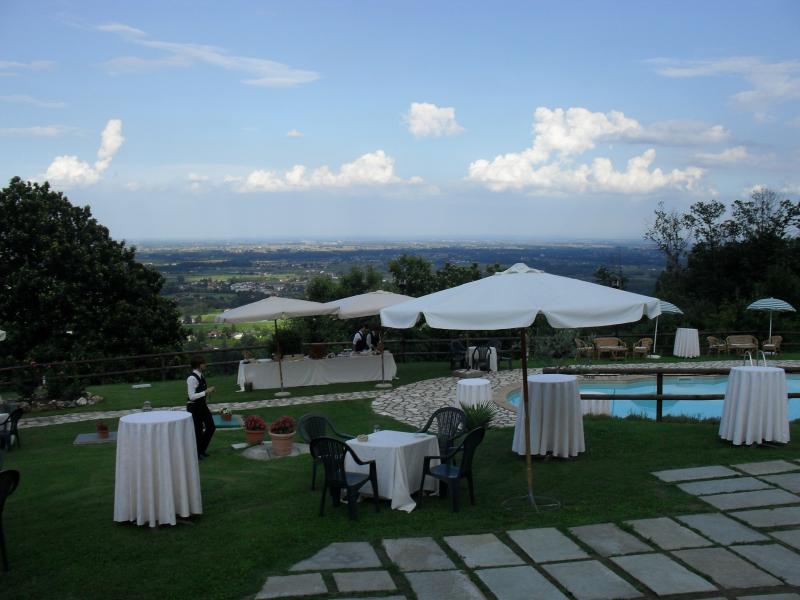 Oasi Bellavista è una location da sogno situata nella verde pianura fra Torino e Pinerolo. La location dispone di tutti i confort e offre uno spazio romantico dove poter organizzare il vostro evento indimenticabile.All'interno dei 15.000 mq di parco, il vostro ricevimento godrà di un'atmosfera unica e singolare. Per il rinfresco di nozze avrete a completa disposizione, la grande sala interna dal suggestivo tetto in legno e climatizzata per ogni esigenzaPer gli sposi che non vogliono rinunciare alla bellezza della natura, esiste la possibilità di spostare il banchetto all'aperto nella bellissima green zone, che vi offre lo spettacolo del lago, e una terrazza panoramica sui giardini rocciosi. La capienza totale per il vostro ricevimento, prevede 250 ospiti. Oasi Bellavista e il suo staff al completo lavorano su ogni singolo evento con la massima professionalità possibile, offrendovi importanti servizi tra i quali : Allestimenti floreali, Intrattenimento musicale, Pacchetto tutto incluso con la possibilità di avere l'affitto della location e il servizio di catering, Ampio parcheggio per gli invitati, Assessoramento per la scelta di catering esterni...Una cornice esclusiva dove vivrete la giornata più bella della vostra vita contando sull'offerta di un servizio impeccabile.