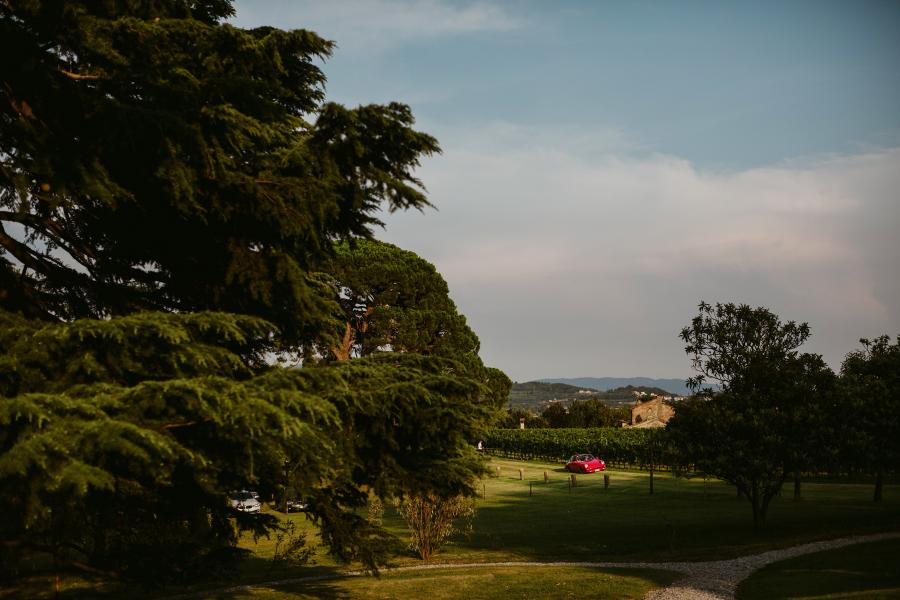 Il giardino all’inglese, con le sue prospettive sempre diverse, custodisce il vigneto, il brolo e imponenti piante secolari.