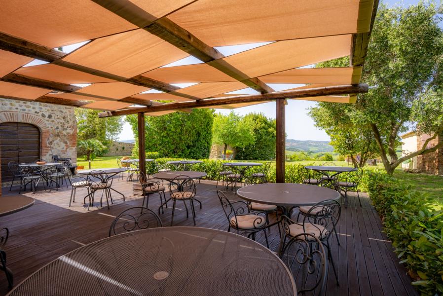 Il ristorante della tenuta dà la possibilità di mangiare sia all’interno che all’esterno, con varie opzioni e un approccio personalizzato ai vostri desideri.