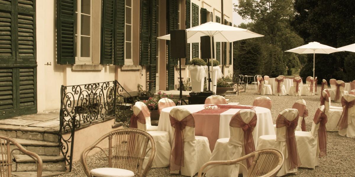 Il magnifico parco all’inglese, ricco di piante secolari e fiori, è ideale per cocktail, ricevimenti e buffet all’aperto.