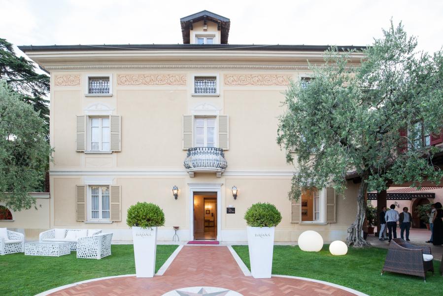 La dedizione e la ricerca dell'eccellenza hanno spinto la famiglia Bozza a restaurare, nel 1989, il palazzo seicentesco costruito da Benedetto Montini e ridotto a quel tempo a poco più di un rudere. E' stato un lavoro lungo e complesso ma ripagato dalla soddisfazione di veder rinascere Villa Baiana. La villa, con le sue grandi sale e terrazze panoramiche, si trova in una posizione incantevole, con vista sui dolci pendii collinari e i vigneti della Franciacorta. Un parco di piante secolari, tra cui spiccano un pregiatissimo cedro del Libano datato 1784 e una nodosa tamerice del 1820, circonda il giardino interno: ad accogliere gli ospiti spicca, davanti all'edificio, la suggestiva scultura in vetro della bresciana Giuliana Geronazzo, Trasparenze del 1997. Villa Baiana non solo è sede di una galleria d'arte contemporanea, ma ospita nei propri saloni circa 200 opere dell'artista milanese Remo Bianco. Una soluzione prestigiosa, ricca di storia e fascino, per chi cerca una location per un matrimonio, un evento speciale, una festa, un meeting. Gli stucchi, i pavimenti in marmo e le colonne neoclassiche accolgono gli ospiti con lo sfarzo trasognante delle favole principesche. La cucina è prelibata e ricca, e gli splendidi ambienti di questa location sono la giusta cornice per la celebrazione di eventi privati (matrimoni, feste, battesimi, cresime, comunioni, lauree) o aziendali. Dal 2017 Villa Baiana è anche casa comunale, per la celebrazione di matrimoni con rito civile. La struttura padronale si dispone su tre livelli, potendo ospitare fino a 600 persone.