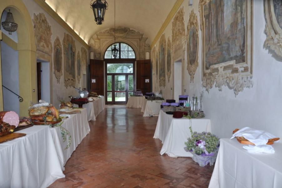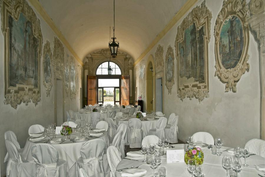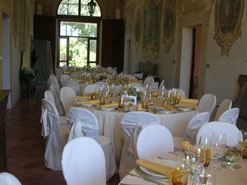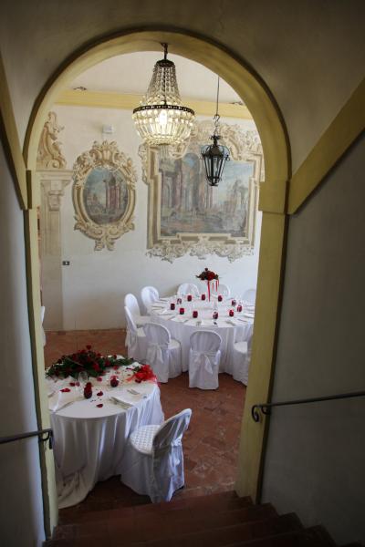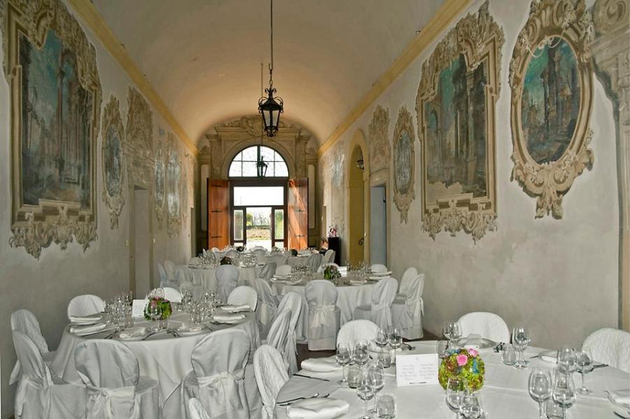 Servizi disponibili: sale villa affrescate, grande giardino, parcheggio privato, bagno disabili