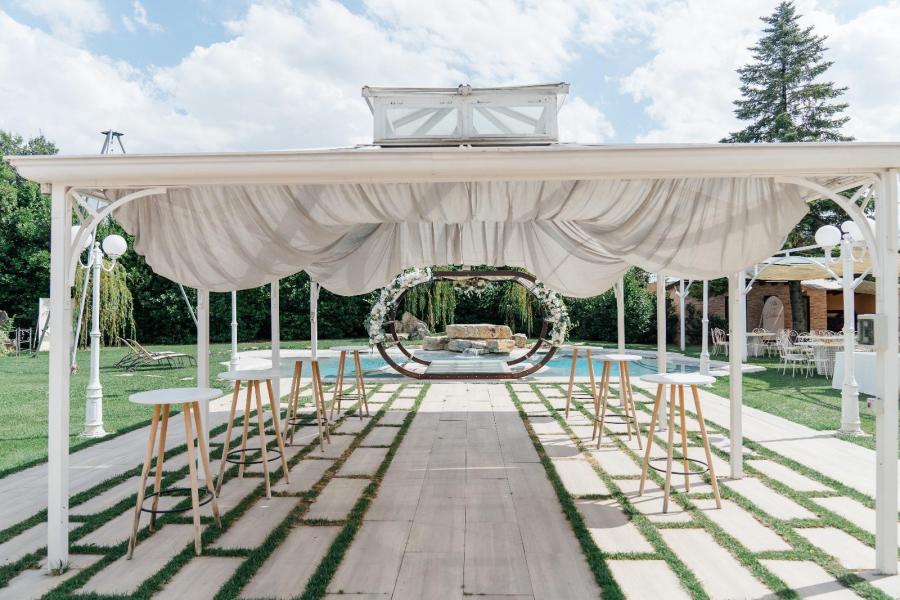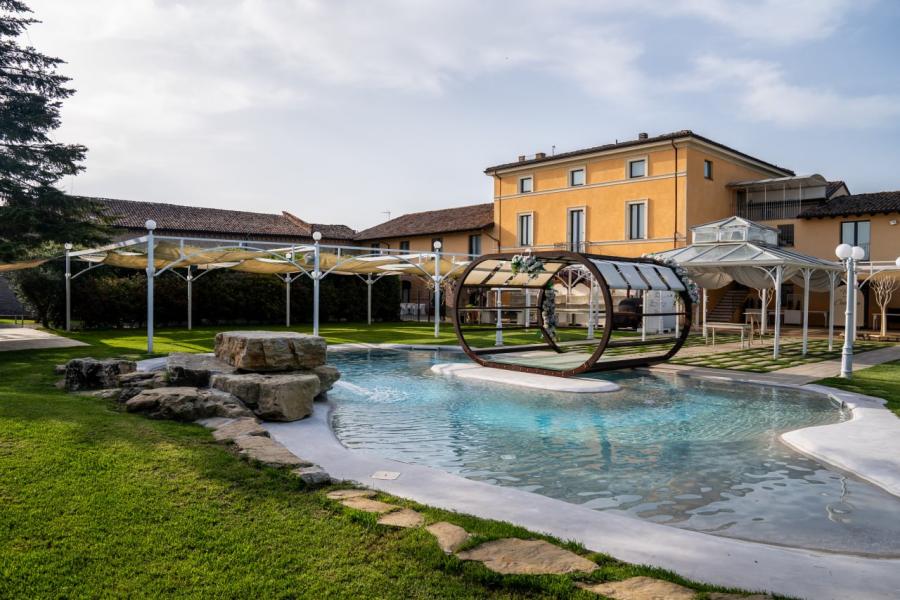 Se invece volete approfittare del clima mite e di una bella giornata di sole, potrete allestire il vostro banchetto a bordo piscina o nell'ampio giardino curato in ogni dettaglio.