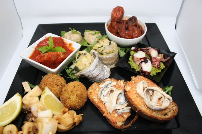 Descrizione: Buffet Antipasti - Aperitivo Angolo del Pescatore:, Cornetti di Spada affumicato con crema di formaggio, Polpette di pesce, Tortino di Pesce agli agrumi, Insalata di Frutta esotica e gamberetti marinati, Fico con ricotta e tonno, Tonno in agrodolce Postazione Griglia: Tentacoli di polpo e Arrosticini di pesce Postazione: Frittura di Paranza, Panelle al nero di seppia. Angolo del Contadino: Caponatina, Involtino di melanzane, Tabulè di verdure grigliate e pesto trapanese, Tortino di patate e speck con fonduta, Girella di zucchina ripiena. Postazione: Panino con milza. Angolo salumi: Crudo di Parma, Salame di Cinghiale, Mortadella di cinghiale, Capo collo, Manzo affumicato, Speck cotto, Salame felino Angolo formaggi e confetture: Caciotta di cinisara, Pecorino siciliano pepato, Pecorino di fossa, Pecorino alle pere, Pecorino al tartufo Mozzarelle di cinisara, Caprini freschi e stagionati. Primi piatti Busiata Fresca con ricciola, trito di erbe aromatiche, vongole e pomodorino Risotto con uova di pesce s. pietro, cozze, melenzane e menta Secondi piatti Millefogli di ricciola con crema di patate alla menta su letto di zucchine e melanzan Gamberoni Gratinati al cocco Bauletto di verdure grigliate. Buffet di dolci Torta nuziale, Pasticceria mignon, Composè di frutta, semifreddi, Cassatelle Varietà di torte. Postazione: Cannoli riempiti al momento.Angolo Bar (Caffè, Amari,Liquori) Acqua minerale, Vino Bianco, Spumante