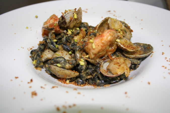 Descrizione: Aperitivo Tartine varie con salmone e bresaola Spiedini fantasia con salumi Nocciole di grana in aceto balsamico Fritti caldi (Panelle al nero di seppia, Arancinette alle sarde) Pecorino siciliano con confetture Crostini con alici marinate e finocchietto Antipasto: Insalata di mare con patate e olive, Tortino di spada affumicato, Gamberetti marinati con mango, rucola e funghi, Ostriche. Primi piatti: Busiate fresche con Vongole, pomodorino, pesto di zucchine e scorza di limone Risotto con crema di melanzane, Gamberetti, punte di asparagi e curry Secondi piatti: Filetto di Cernia alle erbe aromatiche Gamberoni Gratinati Patate prezzemolate/verdure grigliate Buffet di dolci: Torta nuziale, Pasticceria mignon, Composè di frutta, Torte variegate, Semifreddi Acqua minerale, Vino bianco Angolo Bar: Amari, Caffè, Liquori