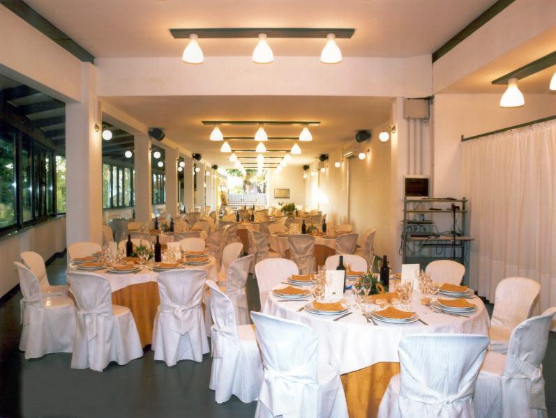La dinamica di una serata classica si svolge incominciando con gli aperitivi su di un panoramicissimo terrazzo, prosegue con la cena in una confortevole sala da 150 posti e si conclude in una zona terrazzata a bordo piscina con un eventuale gruppo musicale.