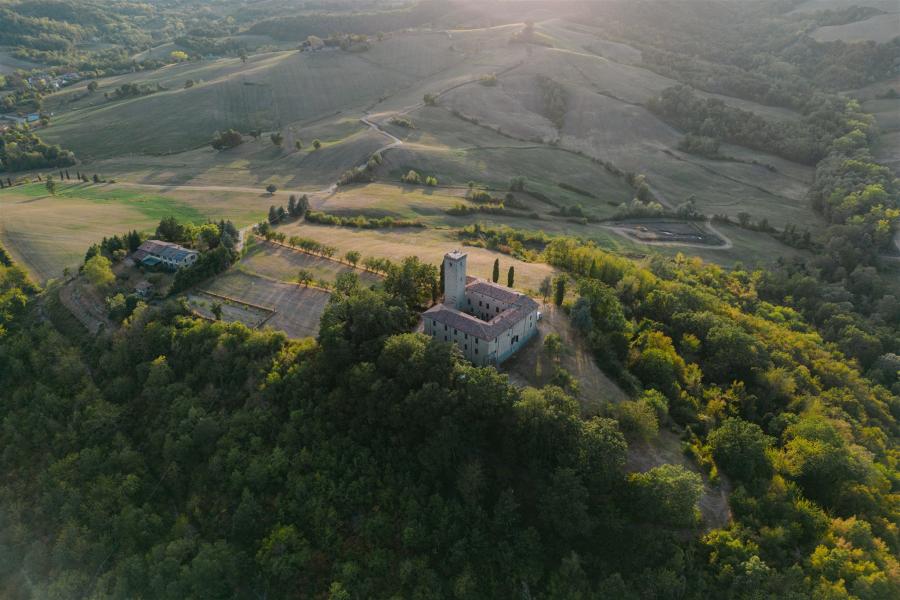 Mirabile esempio del Romanico emiliano, la Chiesa ha condiviso secoli e secoli di storia con il Castello, con cui continua ancora oggi a comunicare: come una sposa con il suo compagno, l’una e l’altro paiono scambiarsi, sulle due opposte colline, gli stessi sguardi amorosi di una coppia che si dirige all’altare.