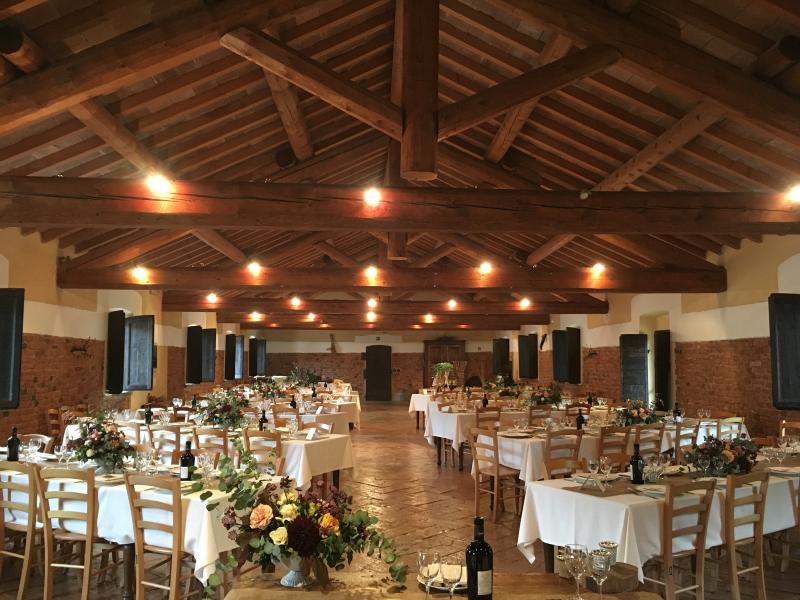 Il vostro banchetto ambientato negli spazi ampi ed avvolgenti di questa splendida cascina godrà di un'ambientazione di grande impatto visivo ed emotivo creata dai toni caldi e poetici della pietra, dalle volte e dagli archi, dalle travi a vista e da una sapiente e calda illuminazione.