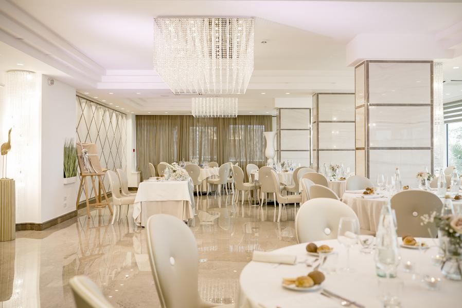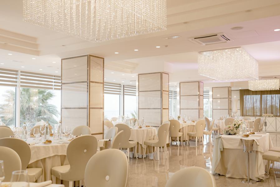 La location vi permette di organizzare una cerimonia davvero esclusiva, con aperitivo in spiaggia e cena nell'elegante ristorante panoramico capace di ospitare fino a 170 ospiti.