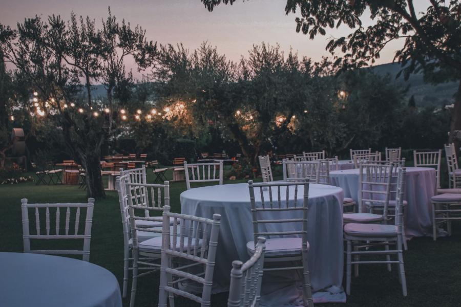 Attrezzature disponibili: tavli, sedie, tovagliati, salotti e arredi