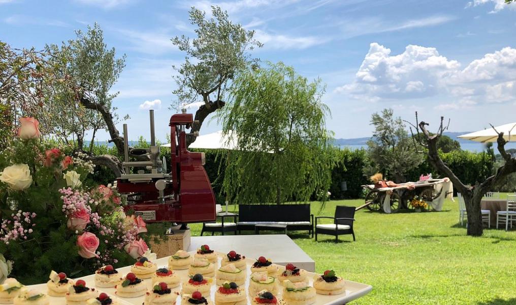 • Giardino degli ulivi per Cerimonie civili e Aperitivi: circondato dal verde lussureggiante, il giardino offre un ambiente sereno e curato, perfetto per ospitare l'aperitivo di benvenuto ed eventualmente l'area dedicata alla cerimonia civile, godendo della brezza del lago e di una scenografia naturale unica.