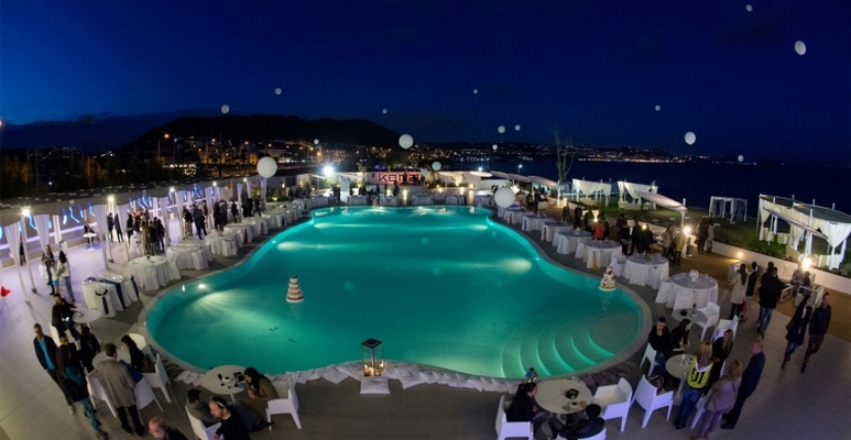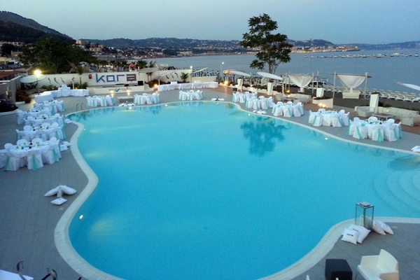 Il Kora - Pool & Beach Events vi presenta un’opzione alternativa e originale per festeggiare un matrimonio non convenzionale e in grande stile, con la sicurezza di un successo assicurato, grazie all’esperienza di uno staff preparato, in grado di rendere ogni evento unico e irripetibile. La bellissima struttura è la perfetta cornice per un ricevimento memorabile che vi offre un ambiente unico, con una bellissima terrazza panoramica e una piscina situata in riva al mare sulla spiaggia di Pozzuoli.Gli spazi interni del locale sono altrettanto esclusivi e di tendenza. Le sale, con il loro design moderno ed elegante e dotate di una speciale illuminazione, saranno perfette per un buffet trendy o per il momento delle danze, con la possibilità di accogliere fino a 250 invitati. Lo staff qualificato del Kora sarà lieto di occuparsi di ogni particolare del vostro ricevimento e della cerimonia in loco, curando ogni dettaglio con perfezione e puntualità, compresi allestimenti e musica. Il Kora - Pool & Beach Events si trova sulla spiaggia di Pozzuoli che si affaccia sul suggestivo Golfo di Napoli ed è pronto ad ospitare il vostro matrimonio nello scenario più originale e moderno che possiate desiderare.