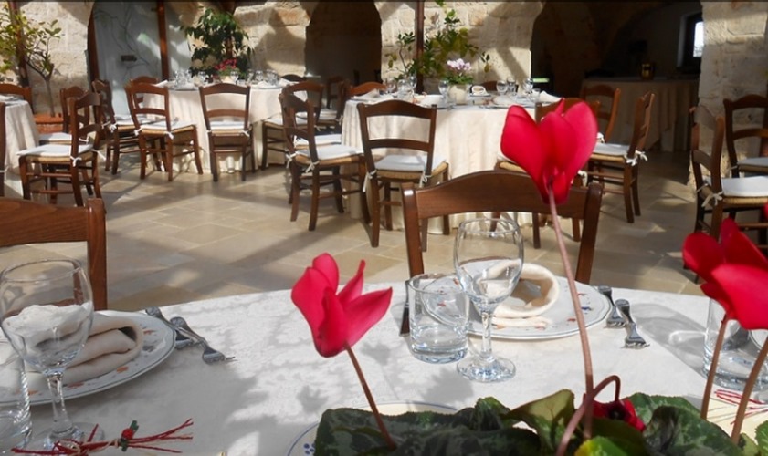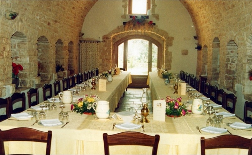 La Masseria Gelso Antico è un'antica struttura del XVII sec., costituita da un meraviglioso complesso di trulli, considerati dall'UNESCO patrimonio architettonico dell'Umanità. La rilevanza sul piano culturale, naturalistico nonché l'accoglienza famigliare riservata agli sposi dagli stessi proprietari, fanno della Masseria Gelso Antico il luogo ideale dove festeggiare il vostro matrimonio e organizzare un ricevimento indimenticabile! Il nostro Ristorante vanta una cucina legata alle genuinita' della terra e del mare; accompagna l'ospite in un viaggio unico tra i piaceri della buona tavola con la realizzazione di piatti tipici che esaltano il gusto della nostra cucina tradizionale pugliese.Prestigioso il servizio, curato ed attento in ogni particolare. La Masseria Gelso Antico è l'ambiente ideale per riscoprire e rinnovare il rito antico della convivialita' in un atmosfera unica ed esclusiva. Dispone di tre sale: - La Sala del Sole, ideale per ricevime ti fino a 120 persone.- La Sala dei Trulli Sovrani, con un caminetto accogliente, per banchetti fino a 40 persone.- La Sala Conversa, l'antica stalla caratterizzata da un monumentale barbecue e dal forno a legna, per riunioni conviviali fino a 60 persone. All'esterno sotto eleganti gazebo inseriti nell'ambiente del parco naturale nel rispetto della struttura masserizia a trulli, si possono festeggiare ricevimenti in genere fino a 150 persone.
