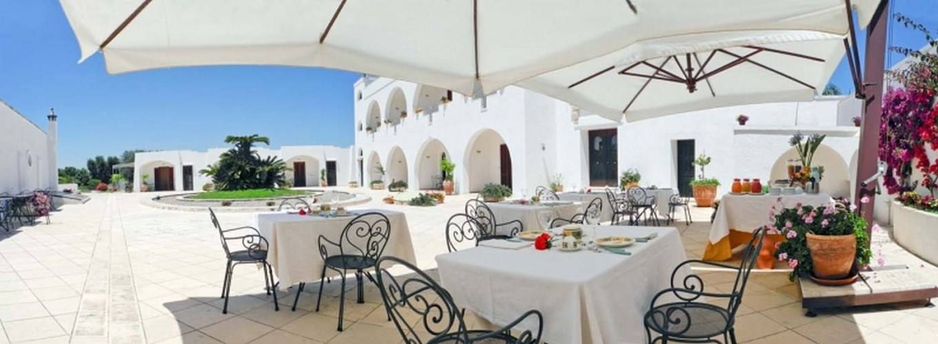 Circondata da circa 40 ettari di uliveto, la masseria vanta anche una chiesetta , un frantoio ipogeo ed affascinanti insediamenti rupestri. Una piscina, inoltre, stempera il suo colore nel verde del prato e delle piante mediterranee, ed assicura piacevoli soggiorni all'aperto e divertimento sotto il caldo sole della Puglia.