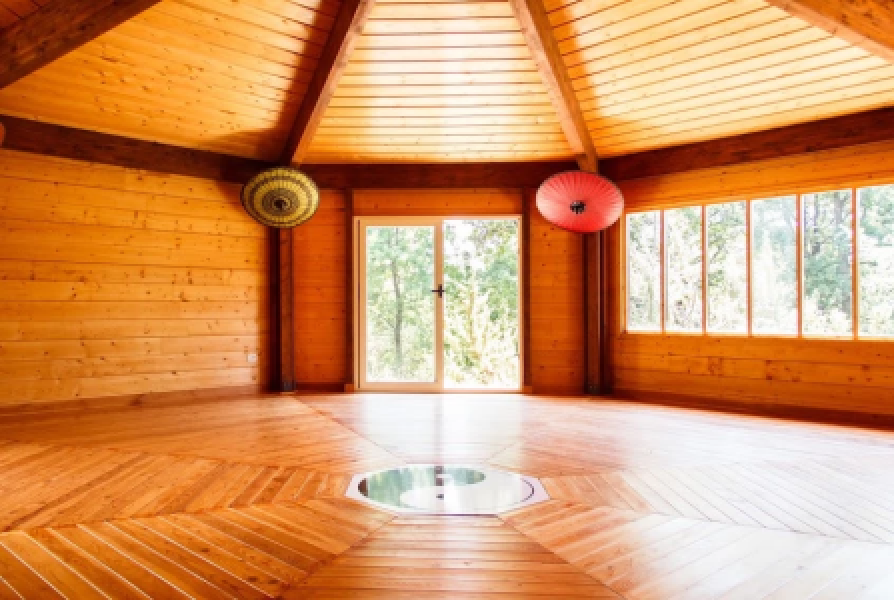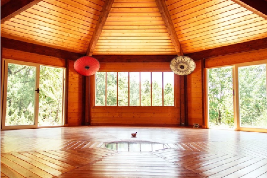 La "Pagoda", una sala ottagonale in legno di larice e abete, con possibilità di lezioni yoga personalizzate.