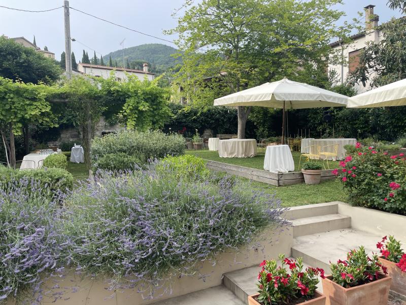 C'è un bellissimo orto giardino ispirato alla passione di Petrarca per la botanica dove vengono coltivate erbe aromatiche e fiori antichi.