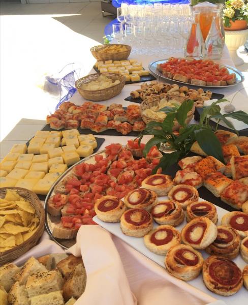 Descrizione: Aperitivo di Benvenuto al Buffet Cocktail Alcolico ed Analcolico Succhi di Frutta Salatini caldi in Sfoglia Pizzette Partenopee Polentine al Gorgonzola Mini Bruschette al Pomodoro Barchette Brisé con Insalata Russa Quadrotti di Focaccia al Rosmarino e Pizza Napoletana Menù Insalatina d’Orzo, Gamberi e Verdurine Saccottino di Bresaola e Caprino con Songino e Salsa Limoncella Tortino di Sfoglia con Zucchini e Porri *** Cavatelli Freschi con Pomodorini Pachino e Pesto Risotto con Menta e Profumo di Limone *** Arrosto di Vitello Patate Dorate al Profumo di Rosmarino *** Torta Nuziale