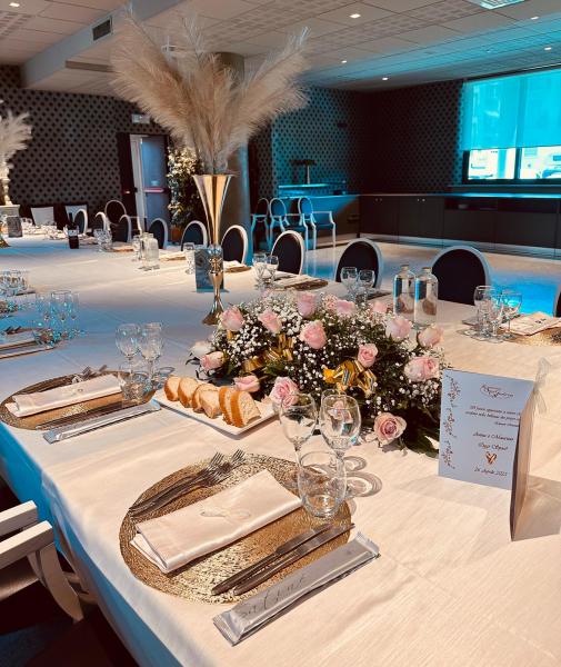 Descrizione: Aperitivo di Benvenuto al Buffet Cocktail Alcolico ed Analcolico e Succhi di Frutta Prosecco Salatini caldi in Sfoglia e Pizzette Partenopee Polentine al Gorgonzola e Mini Bruschette al Pomodoro Barchette Brisé con Insalata Russa Quadrotti di Focaccia al Rosmarino e Pizza Napoletana Frittatine Assortite e Olive Ascolane Grana in Bellavista e Tagliere di Salumi ‘alla moda FINGER’: Vitello Tonnato, Cocktail di Gamberi, Spuma al Formaggio e Basilico con Pomodorini Ciliegino, Cous cous di Verdure Menù Insalatina ai Frutti di Mare con Fagioli Cannellini e Avocado Battuta di Fassone al Coltello con Piccola Ratatouille di Verdure di Stagione Flan di Melanzane con Coulis di Pomodoro, Sedano e Menta Cappesante e Funghi Porcini al Gratin *** Maltagliati con Funghi Porcini e Speak Garganelli con Crema di Scampi *** Cosciotto di Maiale in Crosta di Pane con Salsa al Madera Patate al Rosmarino Sorbetto al Mandarino Involtini di Pesce Spada con Scamorza Affumicata Ventaglio di Zucchine *** Macedonia di Frutta Fresca con Gelato Torta Nuziale