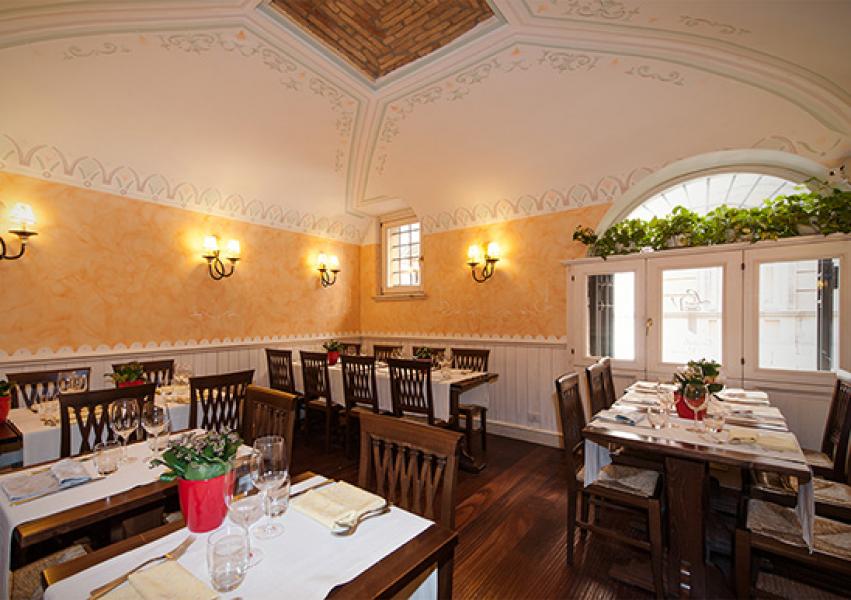 Sala principale, arredata con uno stile liberty raffinato, il quale crea la giusta atmosfera per eventi di ogni genere ed è la più scelta dalle comitive turistiche, anche internazionali, che dopo la visita al vicino Vaticano cercano ristoranti dove ritemprare il fisico;