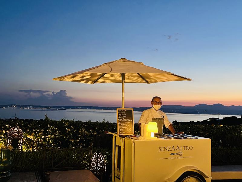 Vorremmo anche presentarVi brevemente l'organizzazione dei ns eventi come segue: i buffet di accoglienza e degli antipasti si trovano sotto al ns porticato dove i piatti proposti vengono preparati in bellavista davanti agli ospiti che hanno a disposizione più di 200 posti a sedere nel ns parco vista lago e oliveto. I primi e secondi vengono serviti all'interno nella ns sala ristorante unica (400 mq / massimo 240 posti) in cui ogni tavolo può godere di una vista mozzafiato sul lago. A seguire viene allestito il tavolo torta nel cuore del ns parco come anche tutte le proposte di desserts. Il con ballo con il servizio di open bar viene ricavato in uno spazio interno dedicato ed è in fase di costruzione una sala da ballo/discoteca. E' inoltre possibile celebrare il rito civile sulla ns collina dei cipressi. La villa viene sempre concessa in esclusiva e non vi sono limiti di orario.