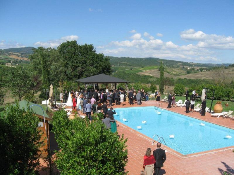 Gli spazi verdi e lussureggianti degli esterni, con le piscine e gli idilliaci angoli panoramici, sono il luogo ideale per accogliere i vostri invitati con aperitivo di benvenuto o per il dolce