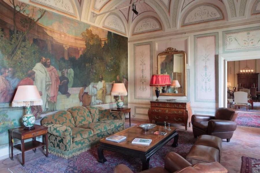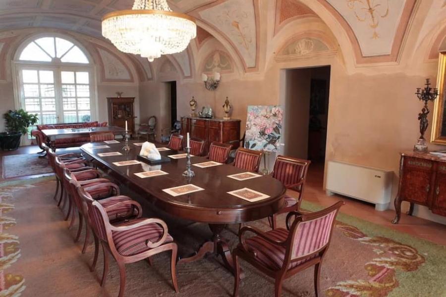 L'antico palazzo cinquecentesco completamente restaurato conserva ancora tutto il fascino e il prestigio dei secoli all'interno delle sue splendide sale affrescate e nei verdissimi parchi secolari.