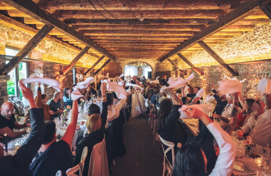 Le sale affrescate o l'ampio salone con mura in pietra e travature a vista del folador rendono l'atmosfera della location "calda" per eventi da ricordare.